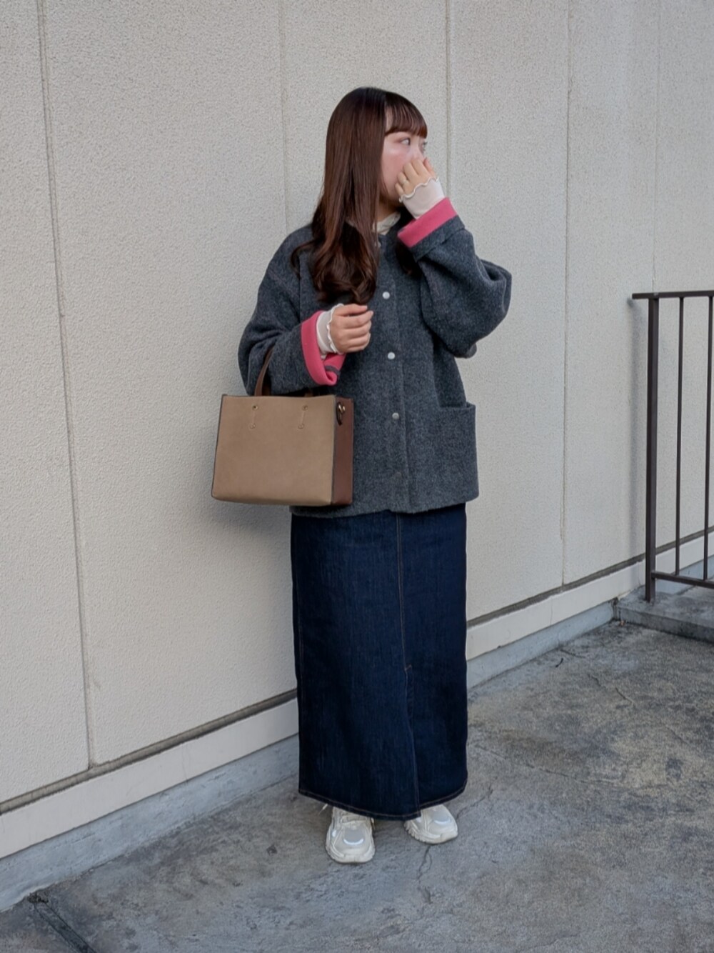 kanaのカーディガン/ボレロ「限定展開 裏配色 スナップ ニット カーディガン」を使ったコーディネート