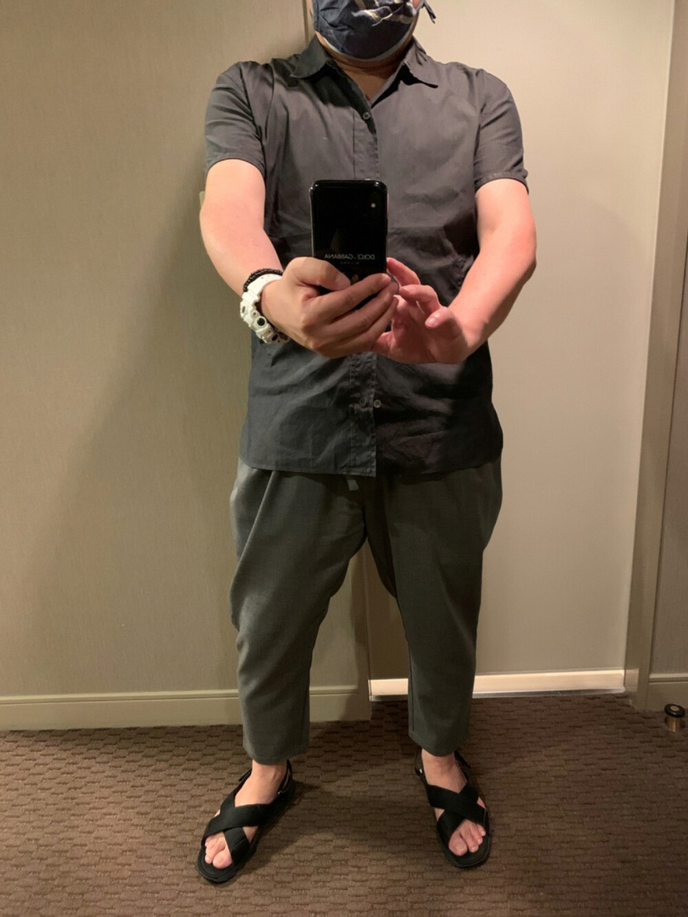 コロナ、コロナ。国民全員が覚悟しなあかんでしょ。 15年くらい前のドルガバのシャツに、麻のサルエルパンツを合わせてみた。