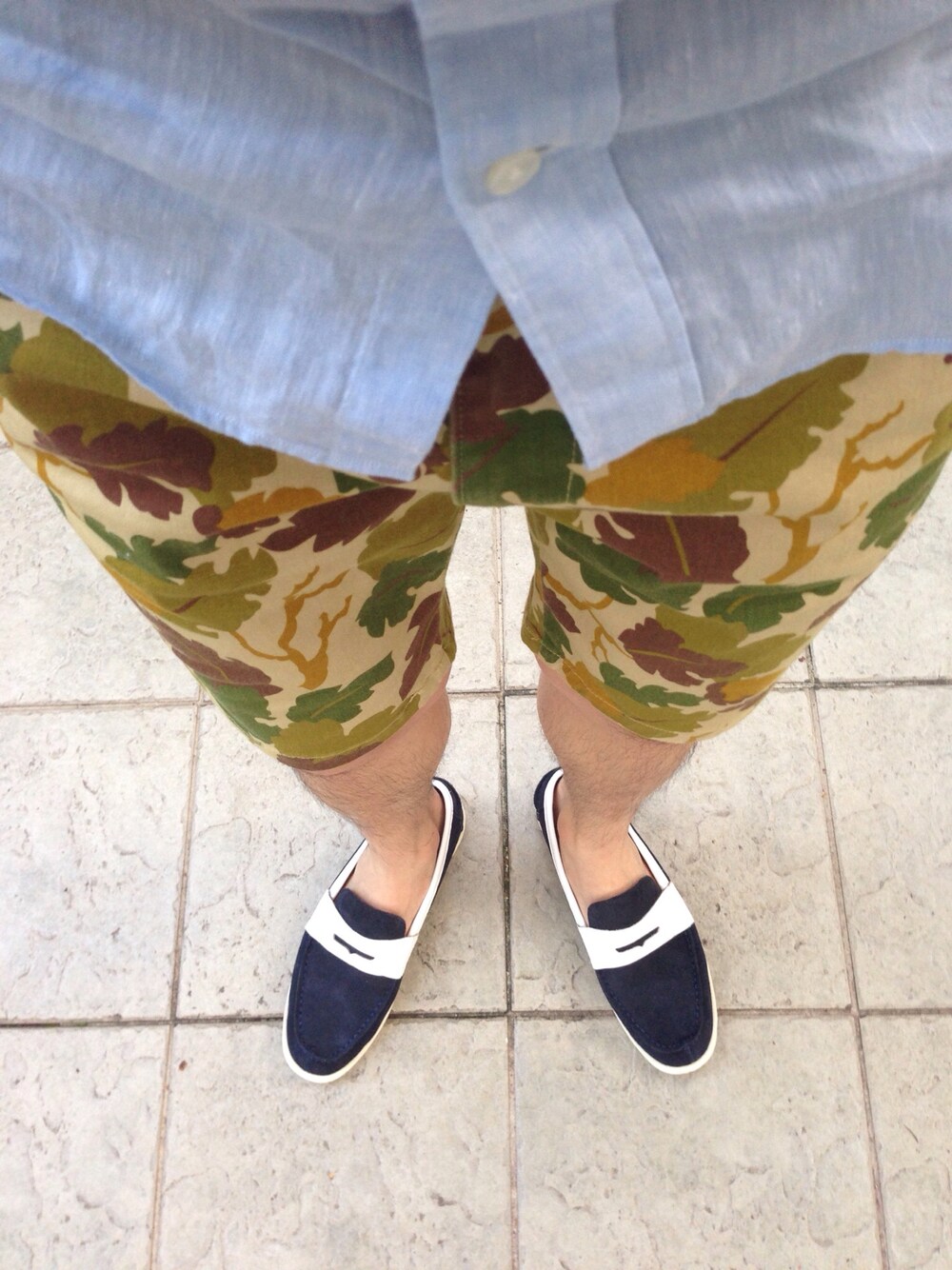 淺藍色麻質襯衫:Beams 迷彩短褲:Beams 鞋子:Beams