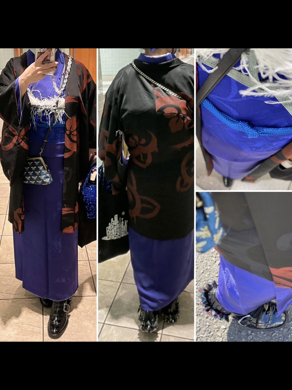 女王蜂のライブに行ってきました。 一張羅の青コーデですね。帯揚げがわりのホワホワも含めてミステリアスのMV風です。 (羽織を脱いだ写真を撮ればよかった)