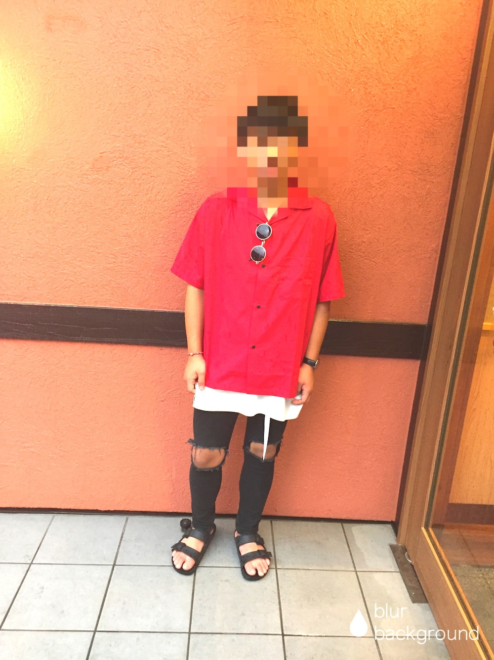 初めてのオープンカラーシャツ! アクセントにサングラス