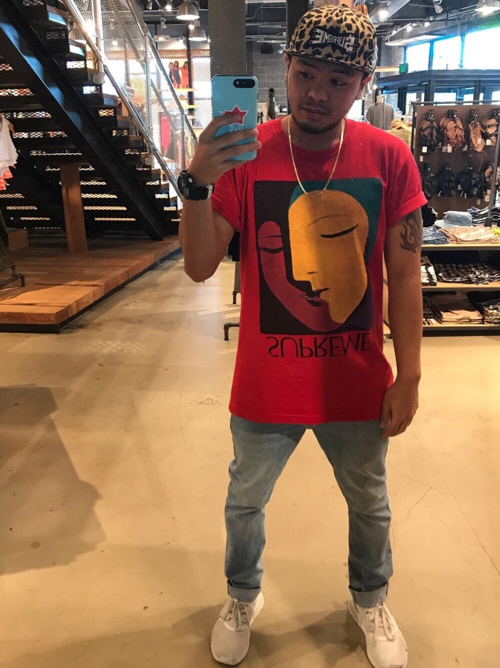 Supreme Saturday⭐️ Supreme Cheetah Print Snapback Supreme Spring Season 17 "Abstract" Tee BDG Lightwash Denim Adidas R1 Primeknit NMDs