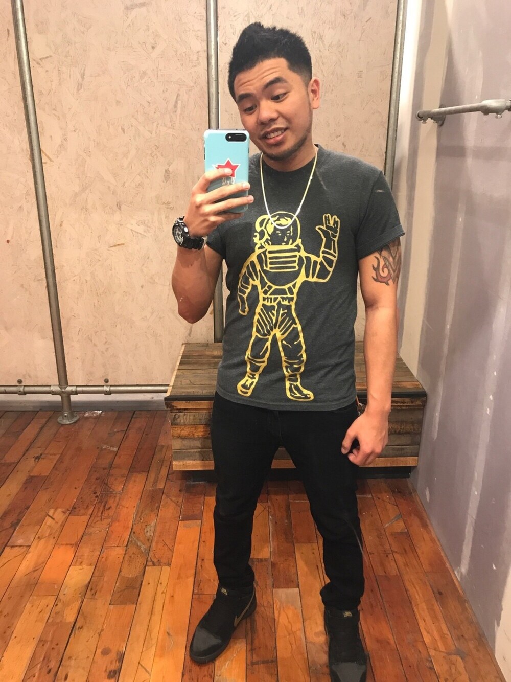 Dark Tones With Flashy Accents👌🏽 Billionaire Boys Club Astronaut Tee BDG Black Denim Casio Black&White G-shock Nike SB Mids (Black and Gold)