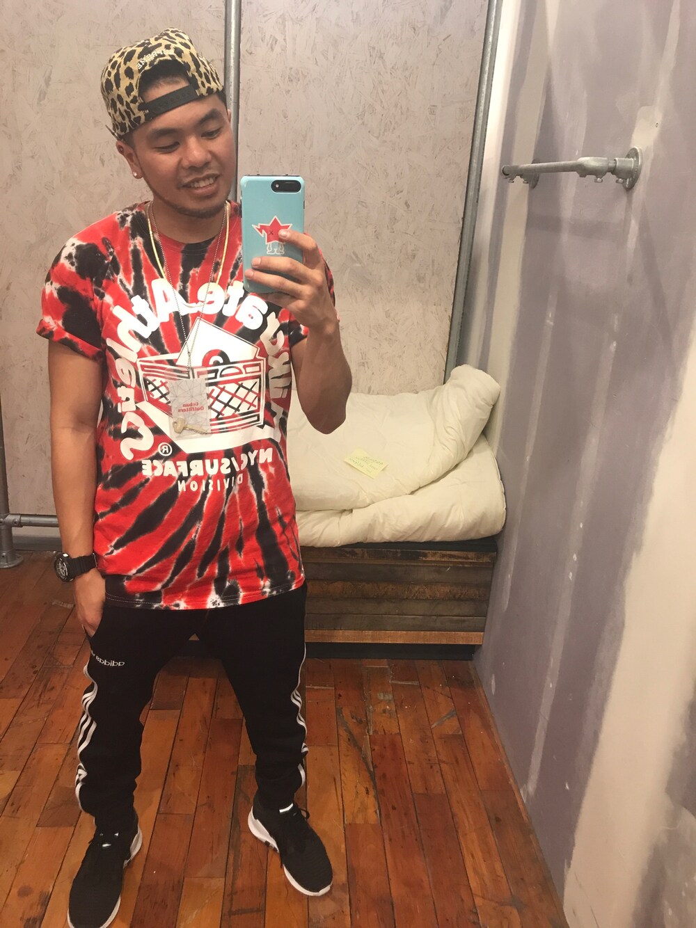 Brought out some bold designs🤙🏾 Supreme Cheetah Snapback Milkcrate Red Tye Die Tee Adidas Sweatpants Adidas EQT Supports