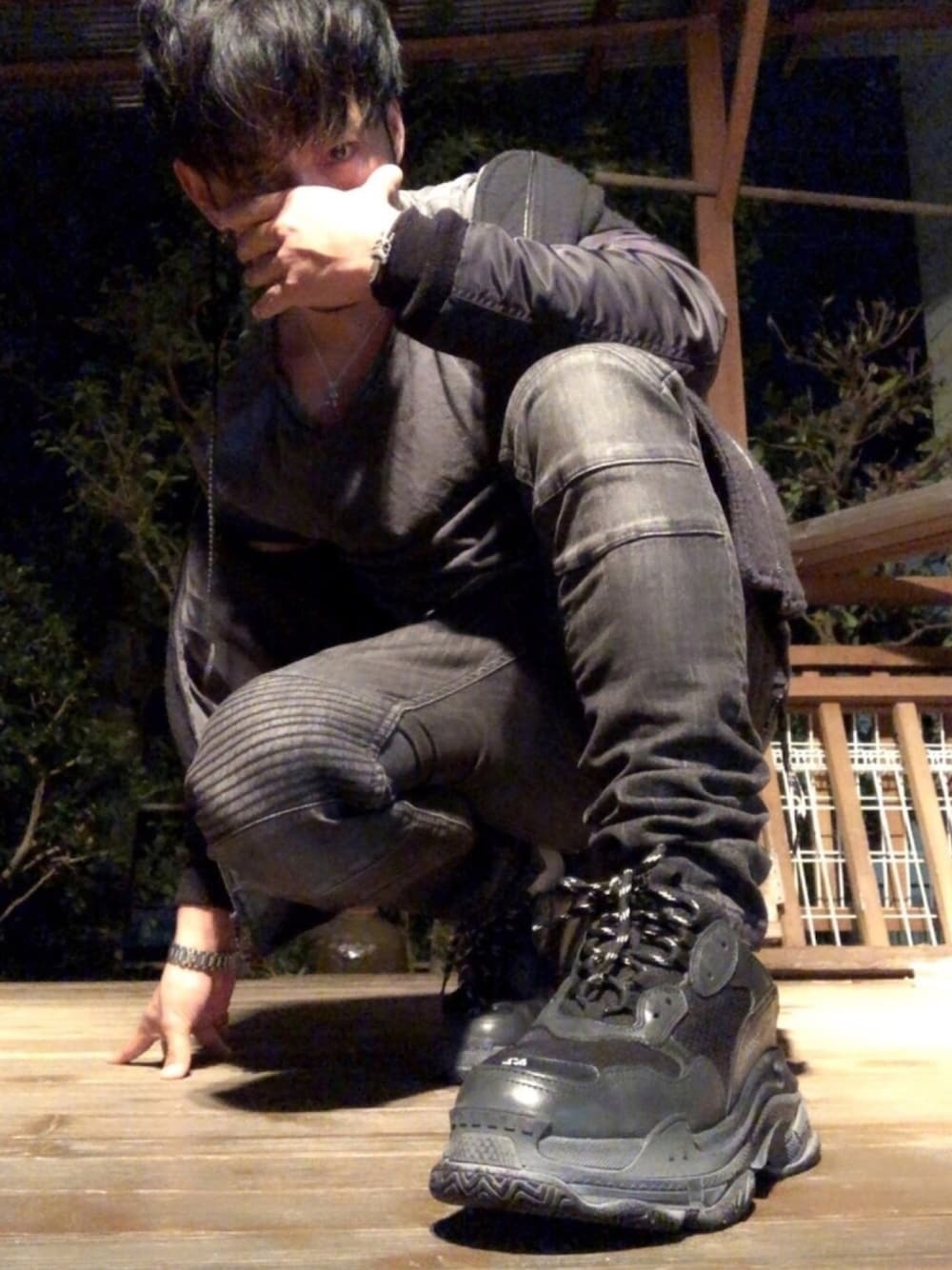 オールブラックと見せかけて、どのアイテムもダメージ加工になっていて、ダークグレーちっく☝️ 90年代ヒプホプも好きやけど、こーゆースタイル出る系も好き❤️ 身長低いくせに…わら