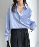 シャツの色が綺麗な水色でお気に入り! 全部前閉めて着るのもかわいいし、インナー見せて着るのもかわいいくて着こなししやすい◎