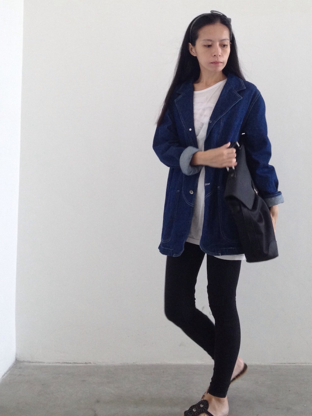 Threw on this oversized jacket to keep myself warm (ps: this jacket has interesting detailing work all over..its pockets are sewn on the inside and also backside pockets of usual jeans sewn on the back of jacket!) and grab a serious looking bag to look all stylish :)