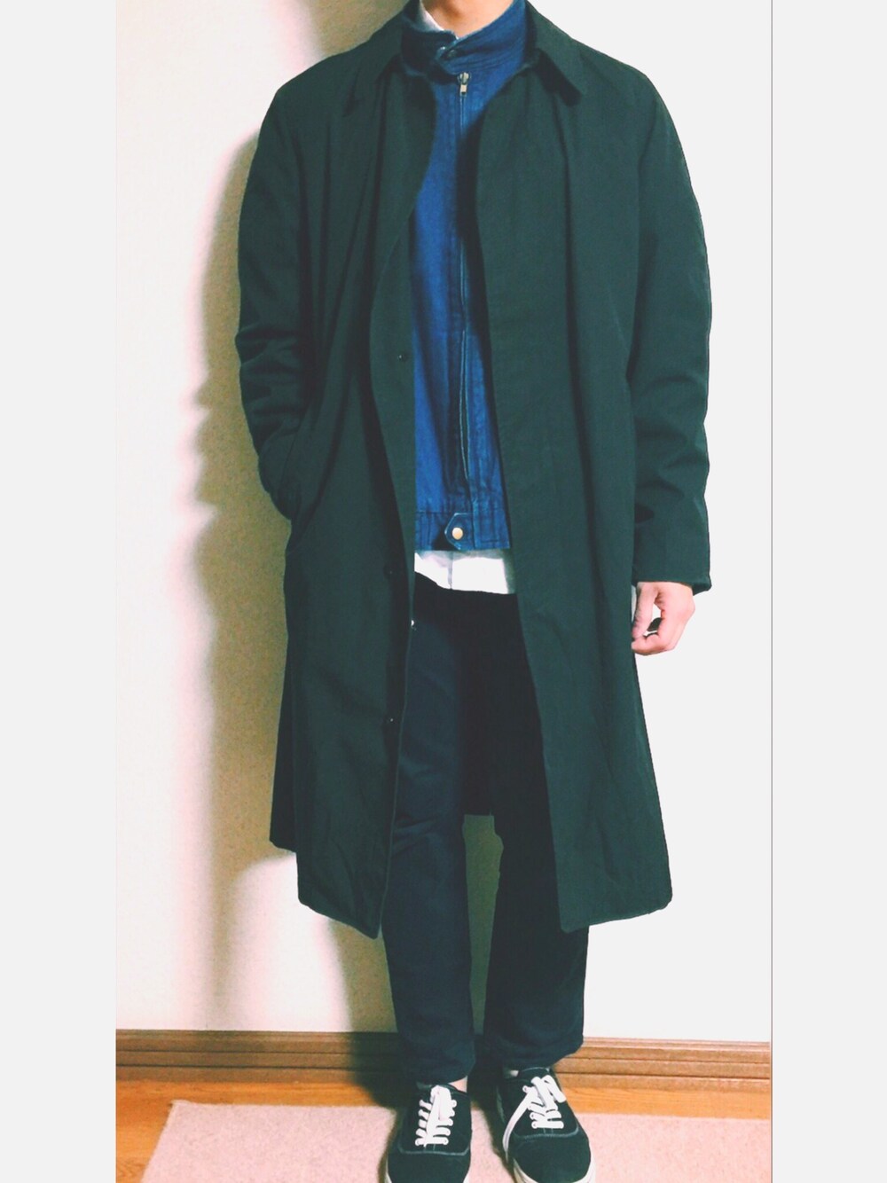 はじめまして。 最近WEAR始めました! よろしくお願いします! デニムブルゾンにステンカラーコートを合わせています。 デニムジャケットにコートを合わせるというコーディネートがありますがそんな感じです笑 ちょっと変わったコーディネートなので色を絞って落ち着かせています。