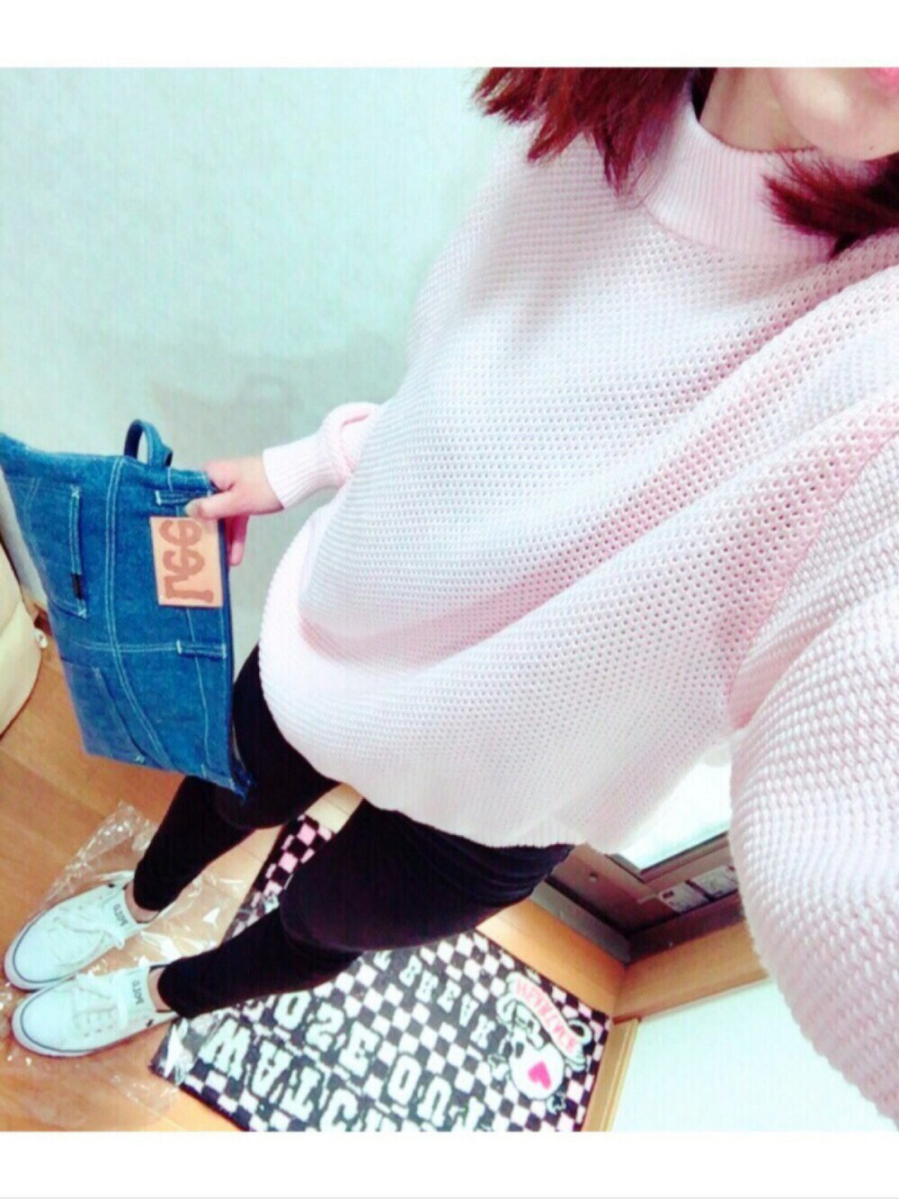 ピンクニット と デニムクラッチ 💘