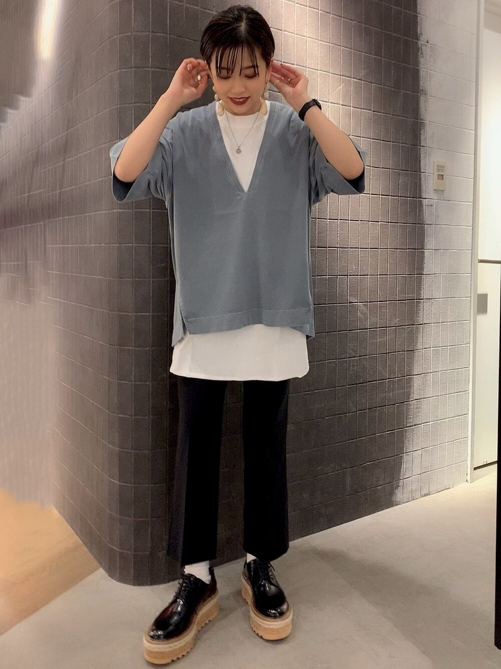MIKU(JEANASIS ららぽーとTOKYO-BAY)のTシャツ/カットソー「カコウフカVプルオーバーSS/885928」を使ったコーディネート