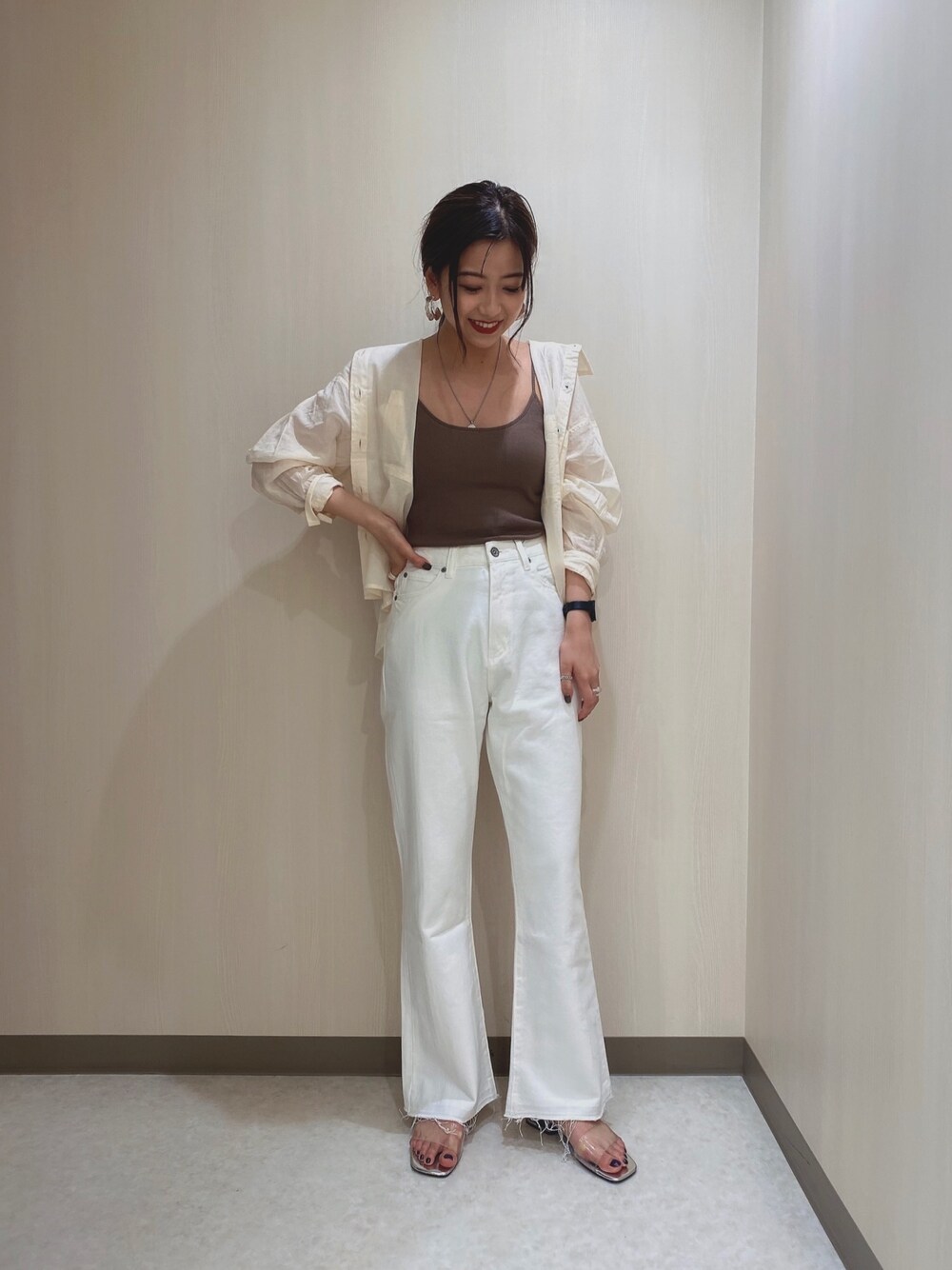 MIKU(JEANASIS ららぽーとTOKYO-BAY)のデニムパンツ「バックスリットホワイトデニムパンツ/887646」を使ったコーディネート