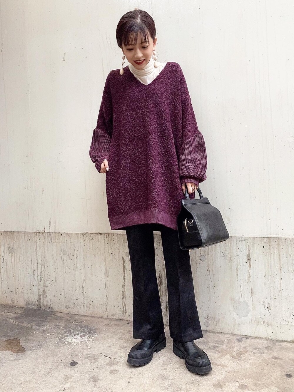MIKU(JEANASIS ららぽーとTOKYO-BAY)のニット/セーター「ブークレドッキングチュニックプルオーバー/924088」を使ったコーディネート