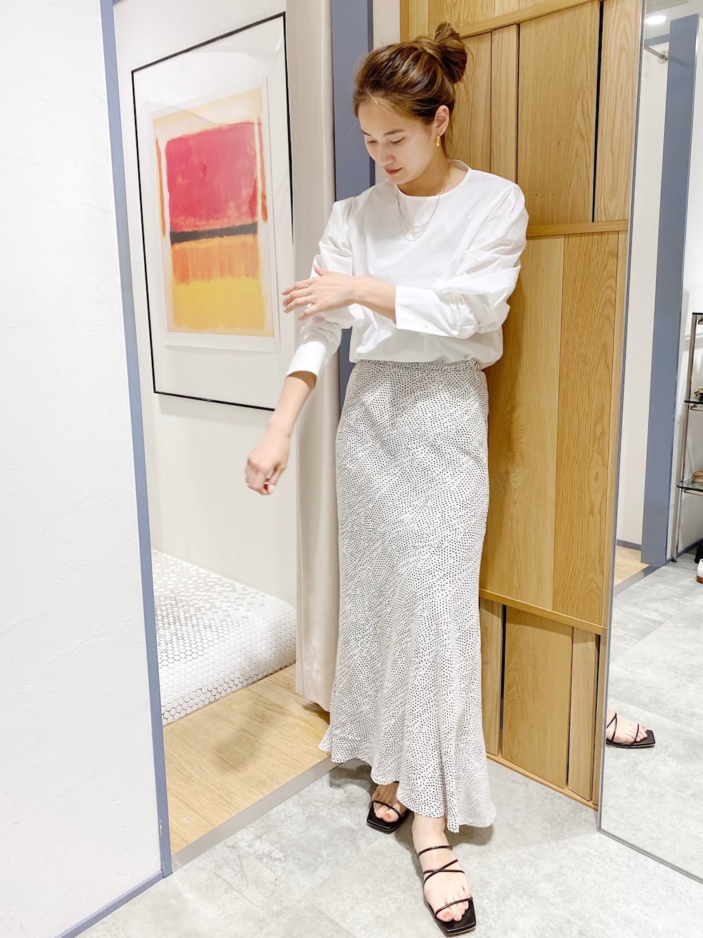 SUZUKI_169cmのスカート「レーヨンプリントマーメイドマキシスカート」を使ったコーディネート