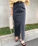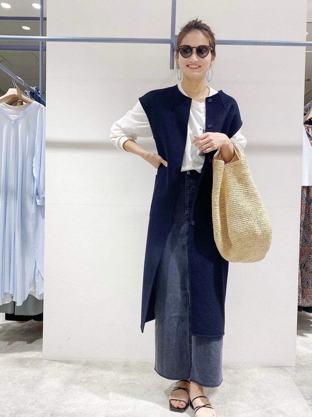 ついに店頭に入荷したデニムタイトマキシスカートを 早速履いてみました!! 入荷前から購入を心に決めていたので 着てみてさらに、わくわくの一枚でした^^ シンプルにカットソー合わせでも スカートのスリットやシルエットが 女性らしい雰囲気に仕上げてくれます^^