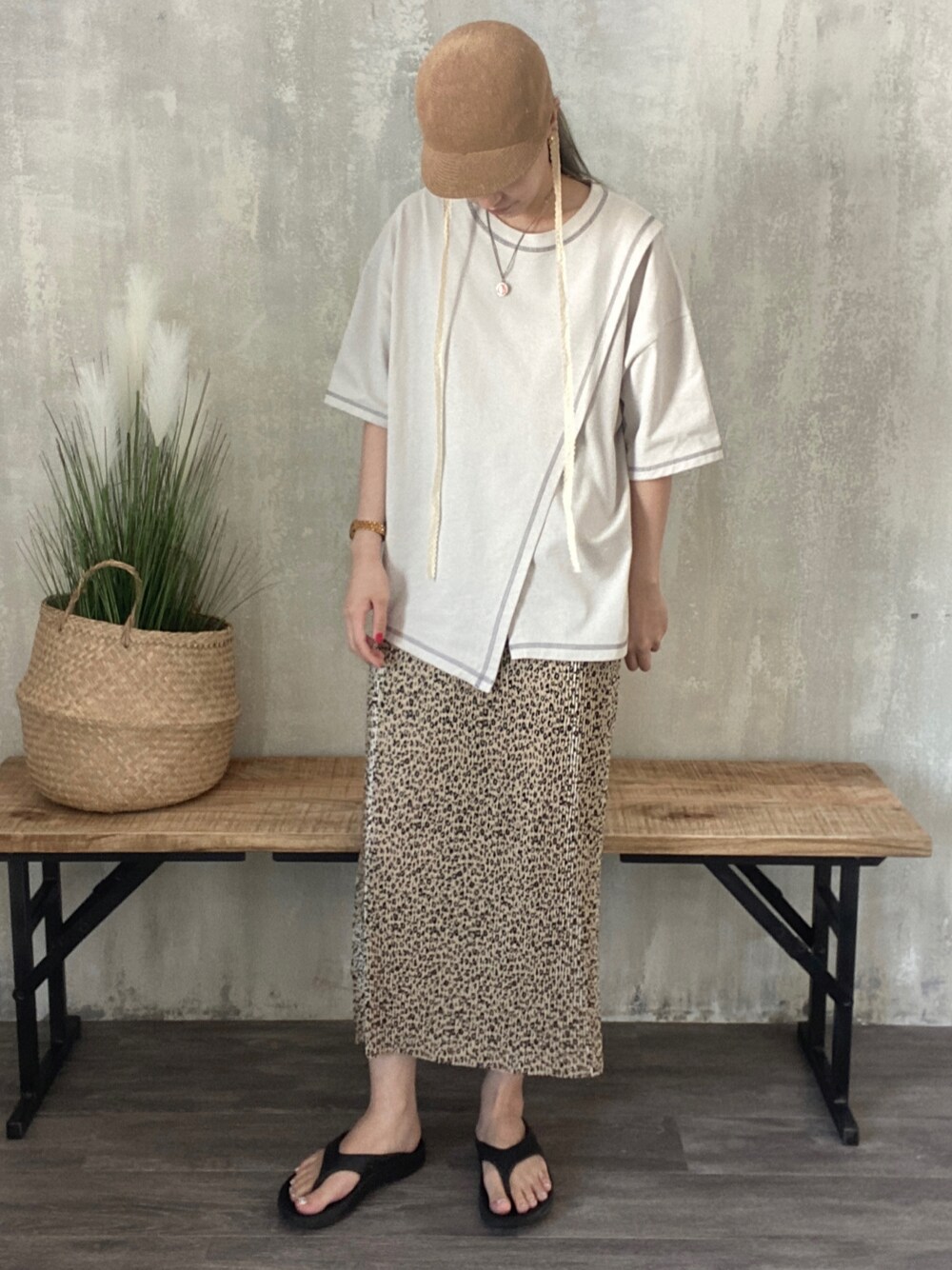 ナチュラル色コーデ、 レオパード柄でポイント 涼しく🌿