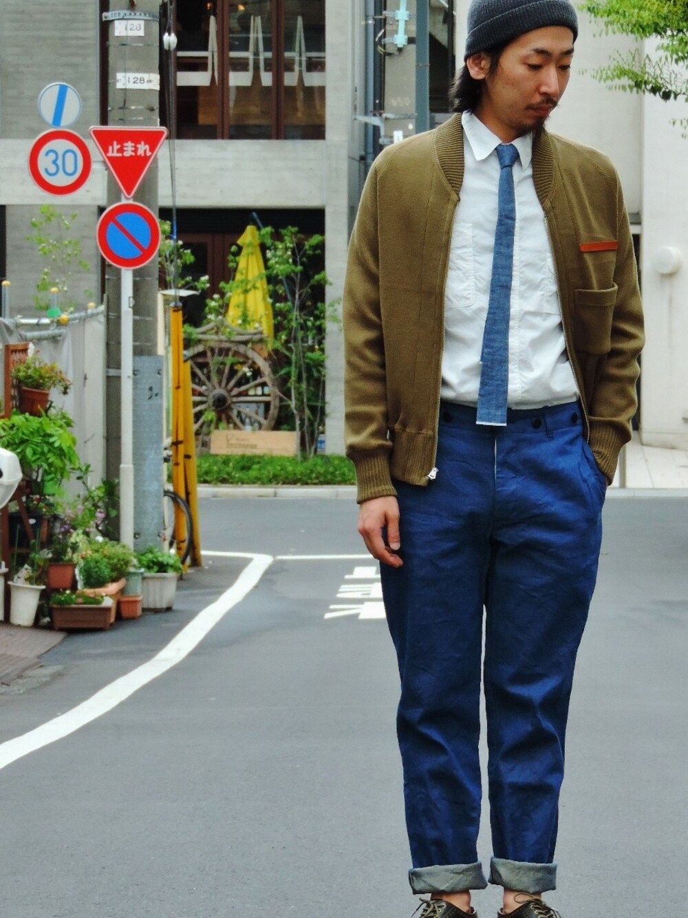 "JOHN GLUCKOW" Coach's Coat オリーブ[JGSA-14SS005] 販売価格: 43,800円 (税別) "JELADO PRODUCT" 綿ブロード ワークシャツ ホワイト[JPSH-1301] 販売価格: 13,800円 (税別) Hill-Side(ヒルサイド) STICK TIE[BW-019] 販売価格: 8,800円 (税別) JELADO "ANTIQUE GARMENTS" 10bells インディゴ[JC-1021] 販売価格: 23,000円 (税別)