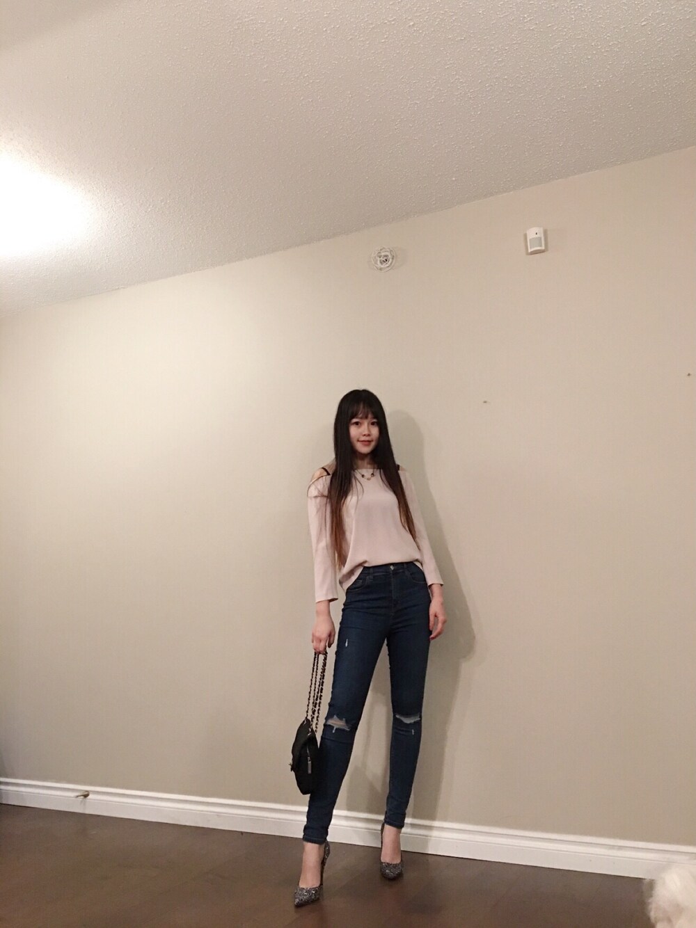 Today's coordinate ❤✨ Didn't update coordinate for a while 😅😅 Today is still pink 🎀and denim👖