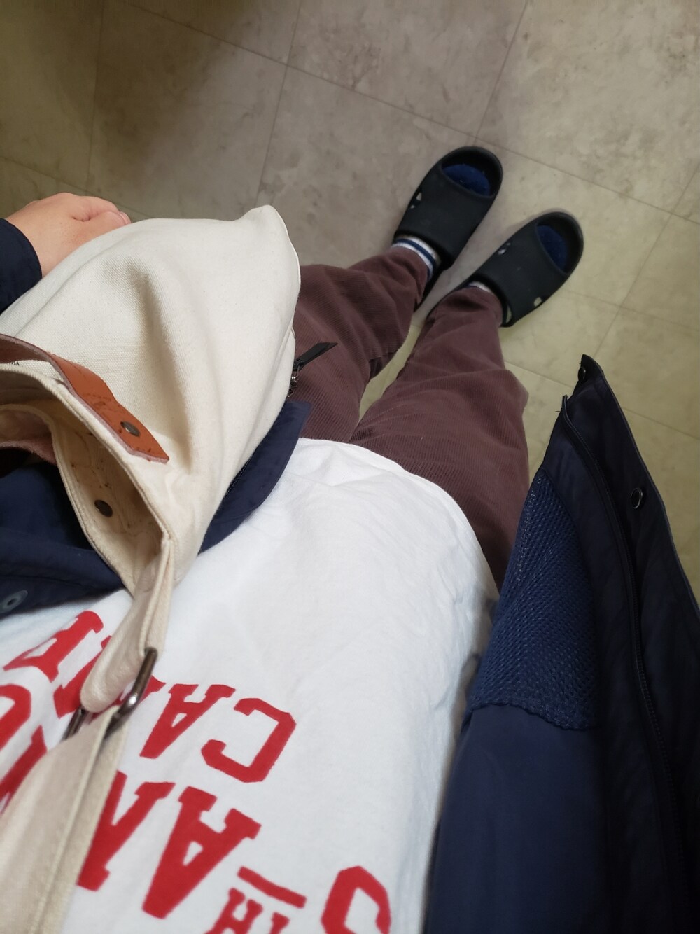 ようやく休みだー! 靴は小窓にあるColumbiaの。