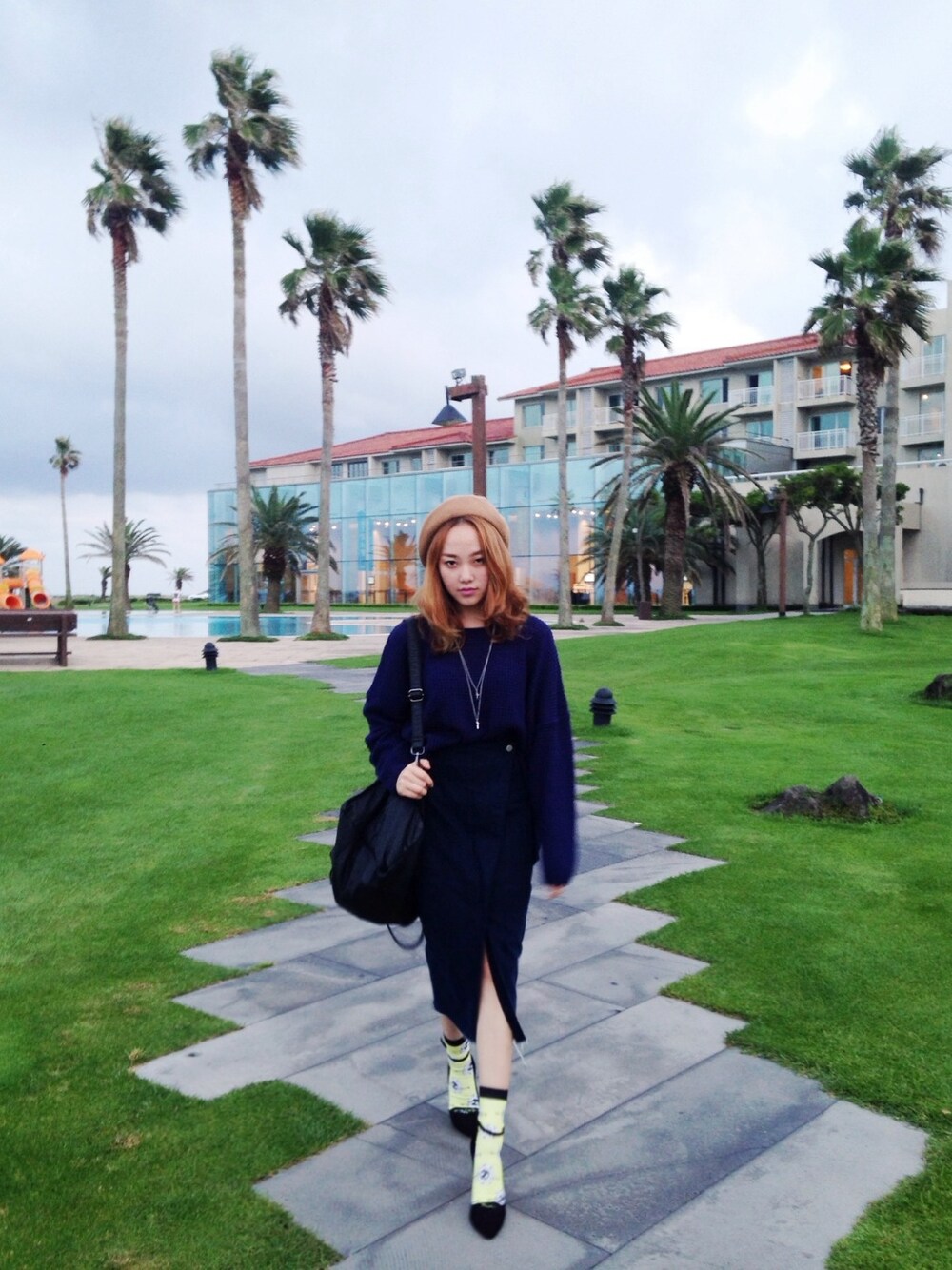 イエロー系のソックス/靴下を着用したレディースの秋コーディネートの1枚目の写真