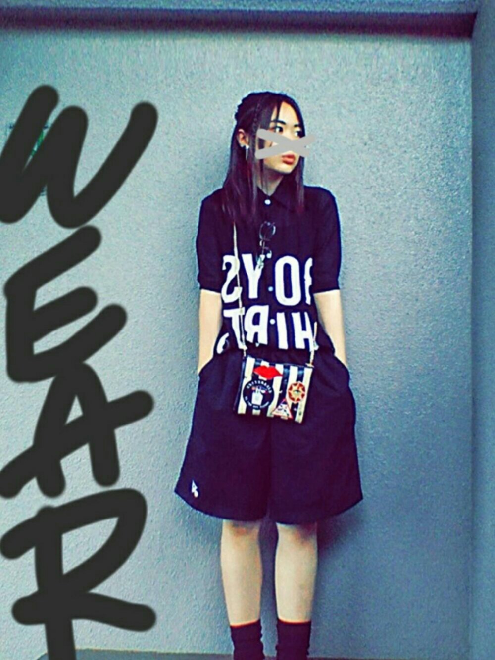 珍しくハーフパンツスタイルです👮 古着で買ったYONEXのやつ〜〜〜 多分テニスウェア🎾 シースルーシャツはほんとはワンピースだけど深いスリット入ってるから前だけタックインで👌 十字架イヤリングはハンドメイドですよ〜〜〜ん