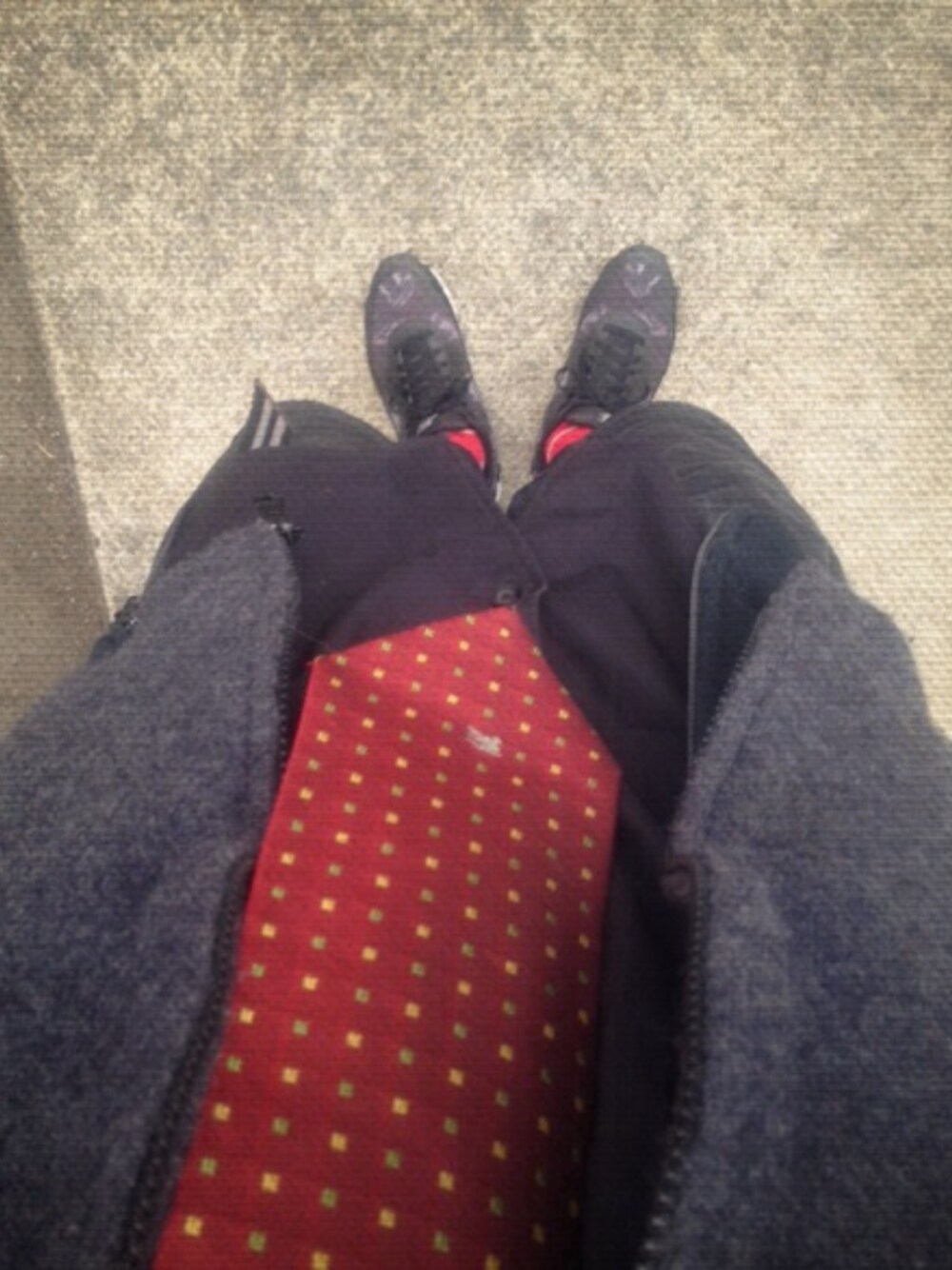 ブルゾン SHIPS パーカー IENA シャツ UNIQLO タイ BURBERRY スキニー&ショーツ ノーブランド シューズ NIKE AIRMAX90 ブラックコーデです。ネクタイで赤を入れてポイントにしました。まだまだ寒いのでスキニーパンツをレギンス風に着て、その上にショーツを履いて個性を出しました。