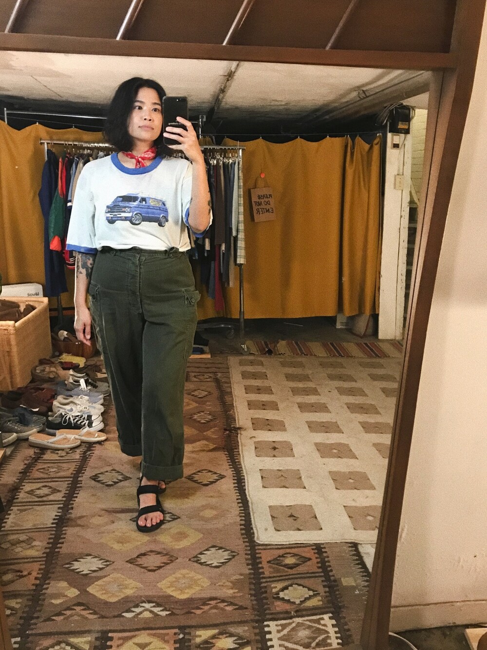 Vintage Beastie Boys tee (early 90s) and vintage Dutch military herringbone pants (70s).