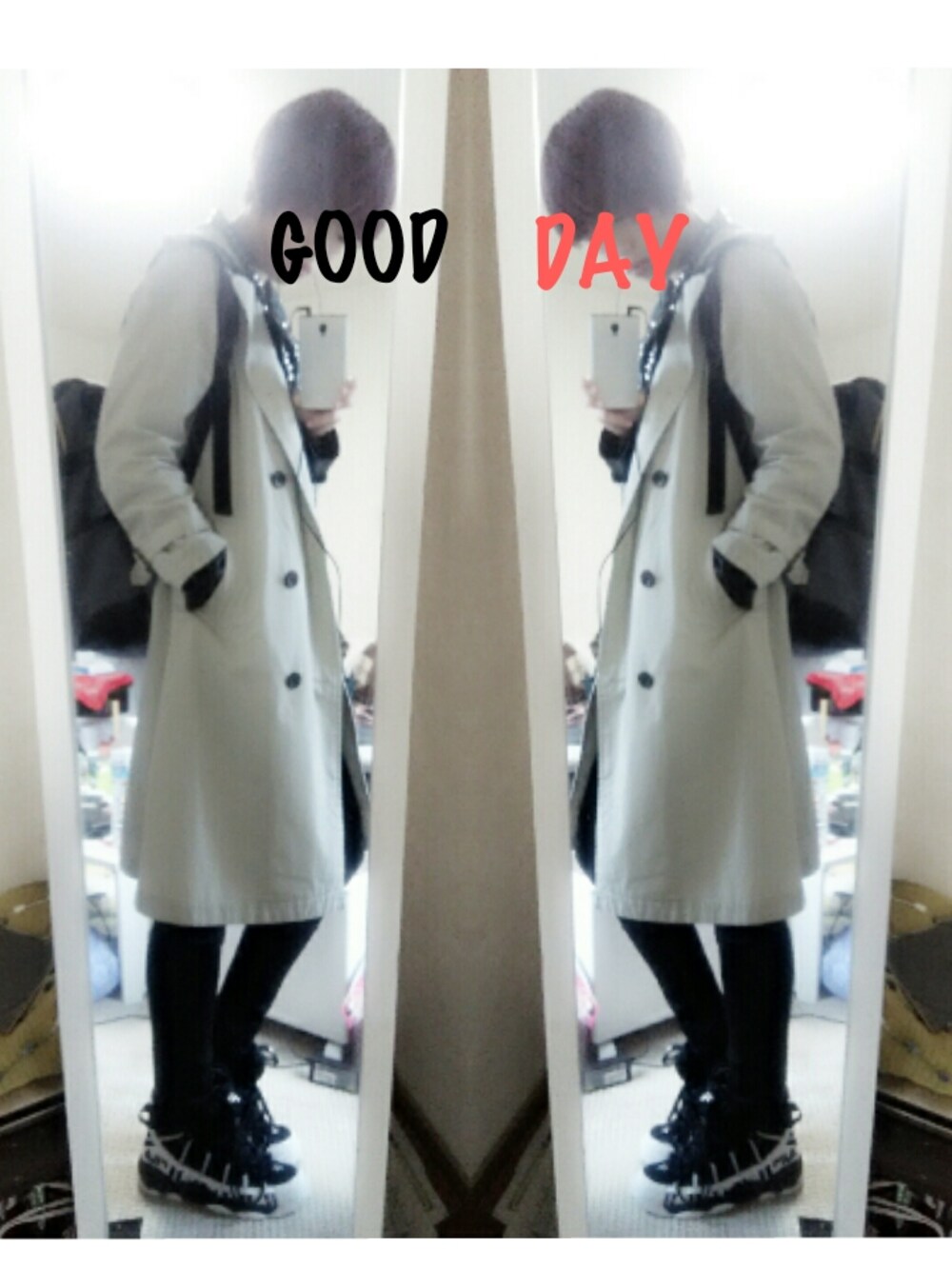 トレンチの中にはレザージャケットを着てカッコ良い感じにしました。 靴はお気に入りのFILA♡ このコを履くだけで一層お洒落を楽しめてます★