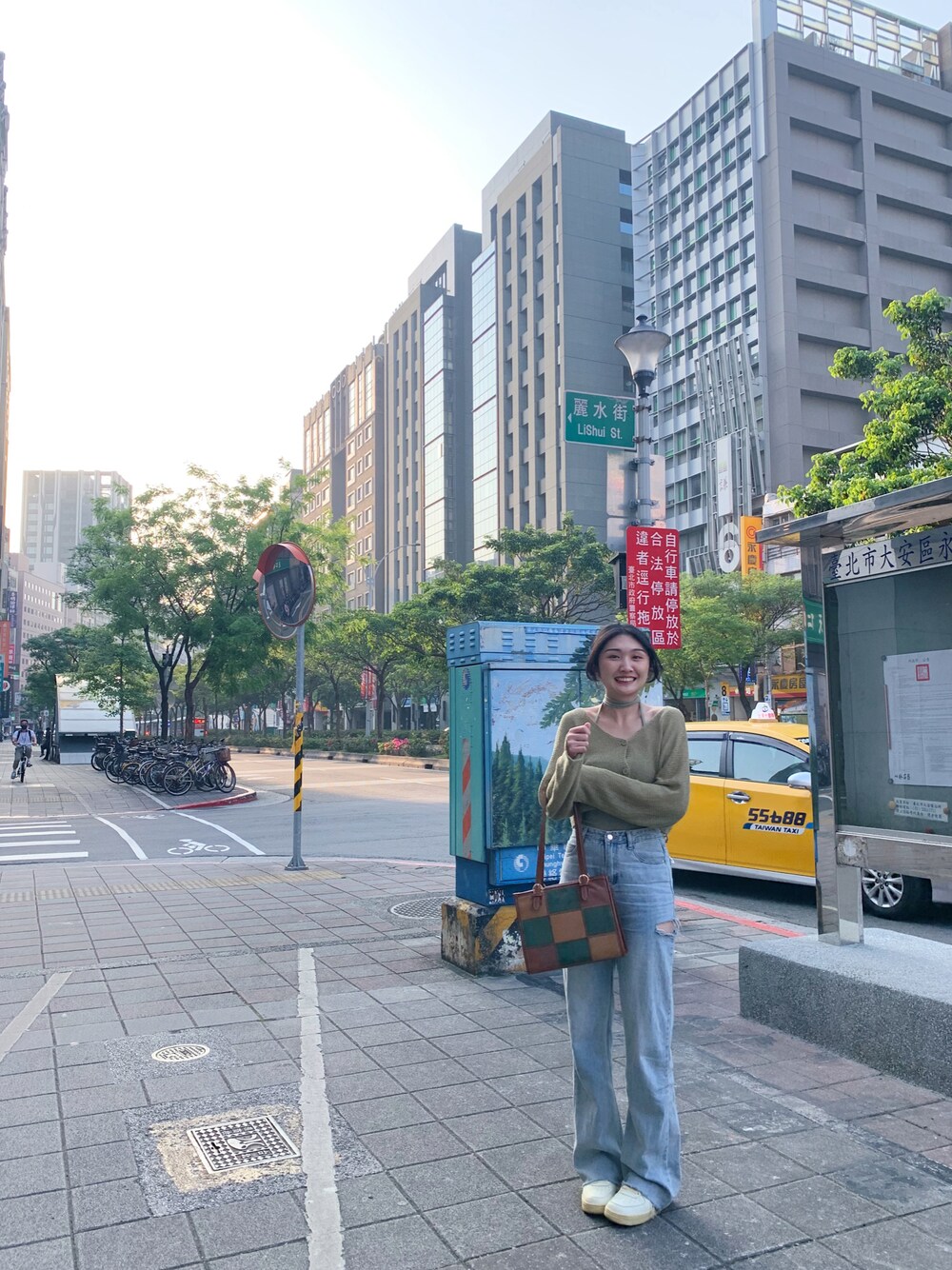 ベージュ系のスニーカーを着用したレディースの春コーディネートの3枚目の写真