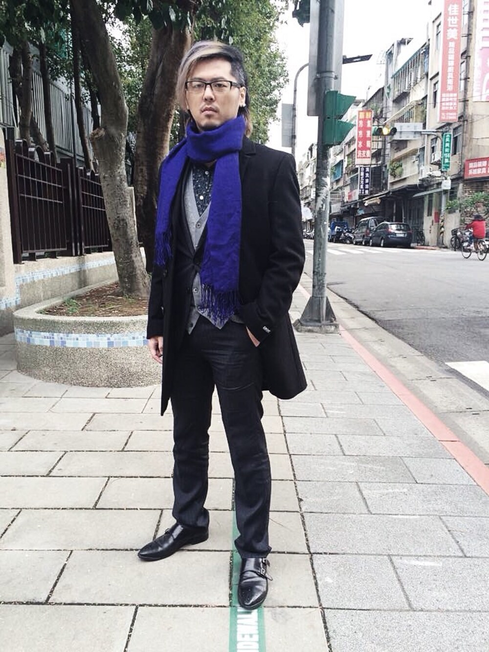 Cardigan: UU(UNDER COVER) Coat: DKNY Scarf: H&M Shirt: Peter Werth Suit: Strellson shoes: ALLEGREZZA