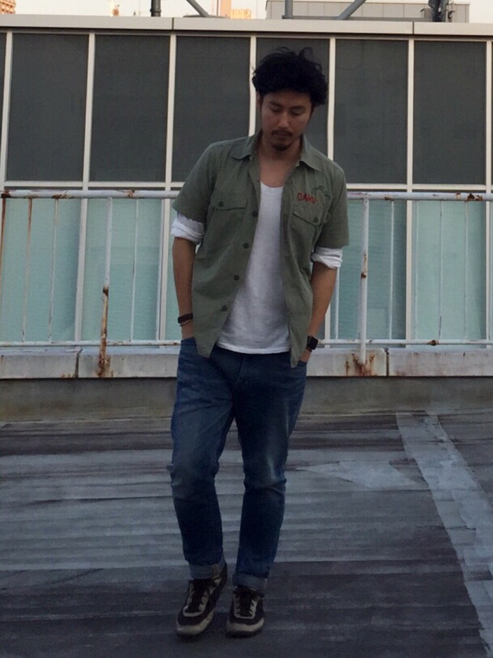 今日はお気に入りのミリタリーカラーのシャツです