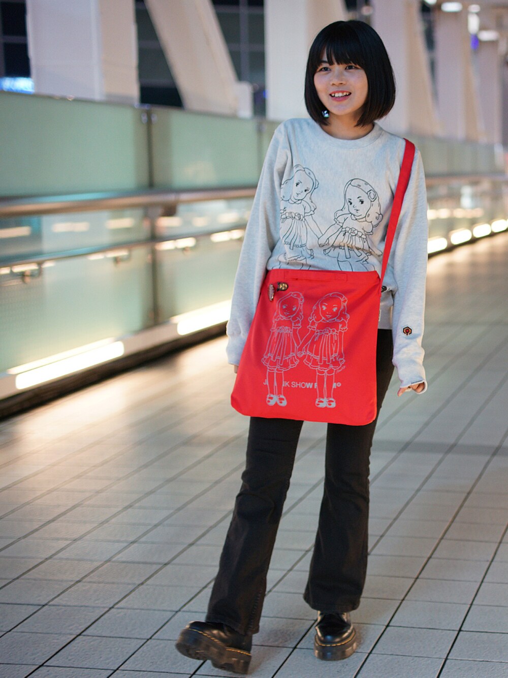 SWEAT: JETLINK THE OVERLOOK TWINS SWEAT SHIRTS Bottoms: MADISON BLUE Bag: JETLINK THE OVERLOOK TWINS SHOULDER BAG Boots: Dr.Martens