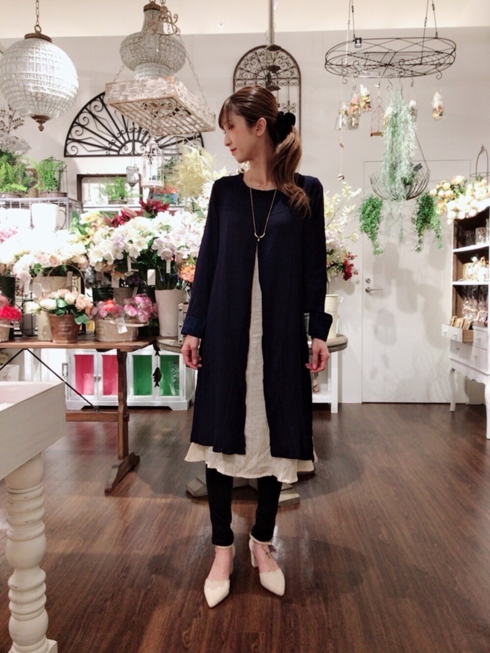 今回着ているのがレイヤードが可愛らしいワンピースになります。 透け感も女性らしさを引き出してくれるのが嬉しいポイントです。 肌に優しいサラリとしたリネンライクなので、春にはぴったり。 ゆるっと着れるので、お花見など座るときのコーデにおすすめ!