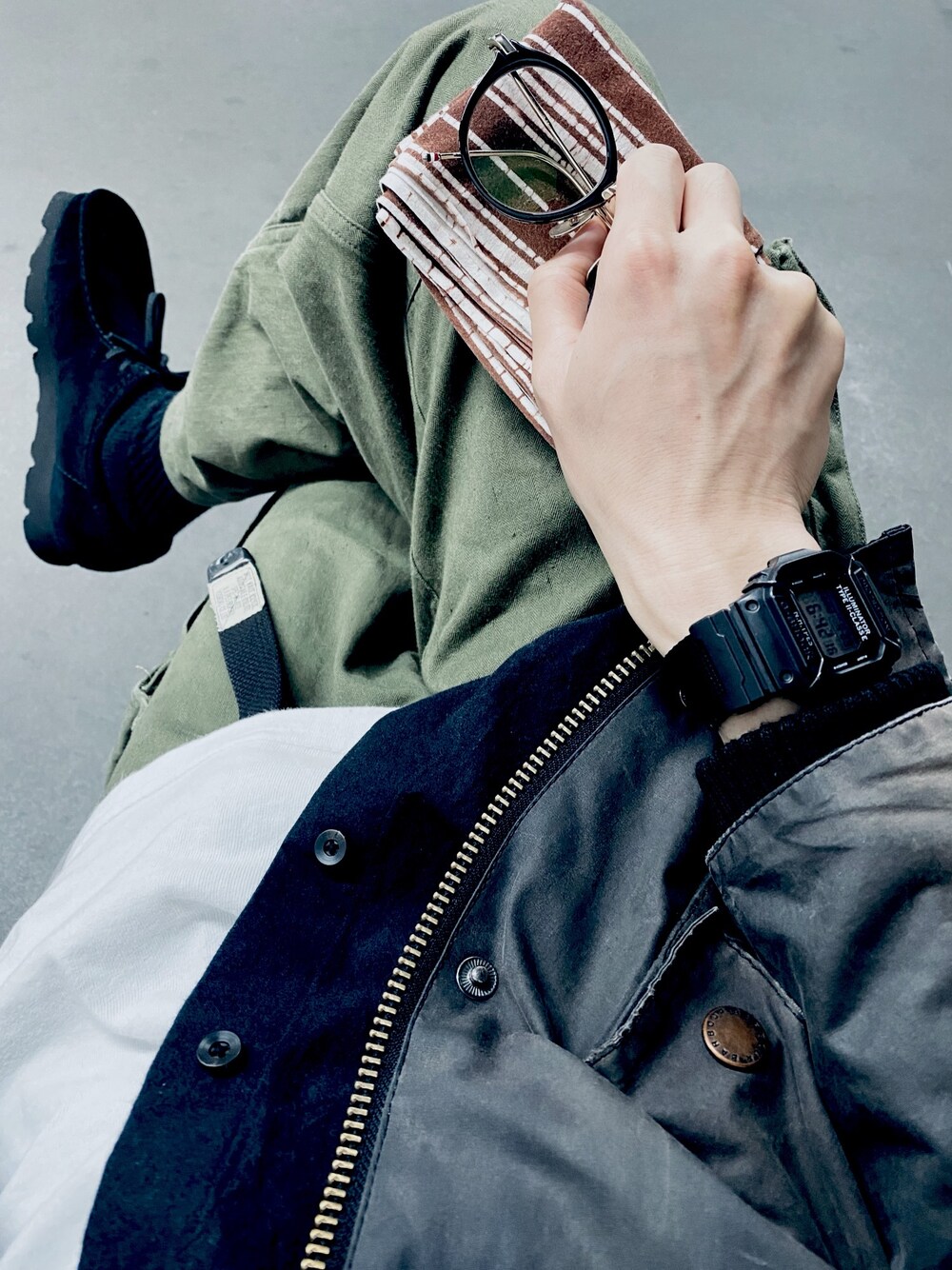 wax jacket Barbour shirt PORTER CLASSIC pocket tee Good wear inner UNIQLO pants USED belt PORTER×N.HOOLYWOOD socks Champion shoes Clarks eyewear THOM BROWNE watch G-SHOCK×N.HOOLYWOOD tenugui ANATOMICA 🌧😷🥸👨🏻💼☂️💨
