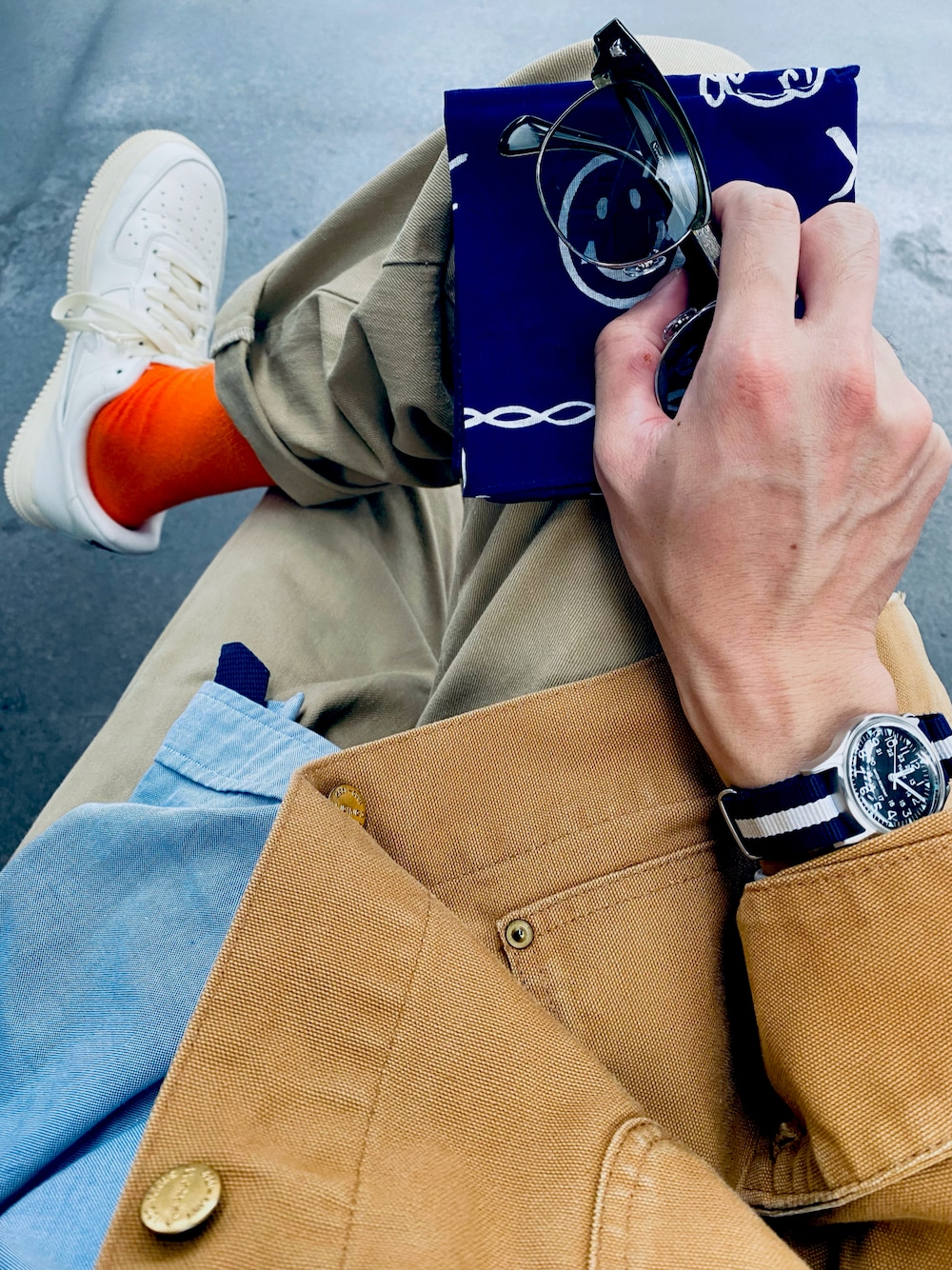 coverall Carhartt shirt Brooks Brothers by Remi Relief×Begin thermal ANATOMICA pack tee Healthknit pants AURALEE belt BAGJACK socks H BEAUTY&YOUTH UNITED ARROWS shoes NIKE eyewear Needles watch TIMEX bandanna NEPENTHES×〈OTAKARA NYC〉 🌥️😎👨🏻🌾🤎🩵🍊🦋💚💰💥💥