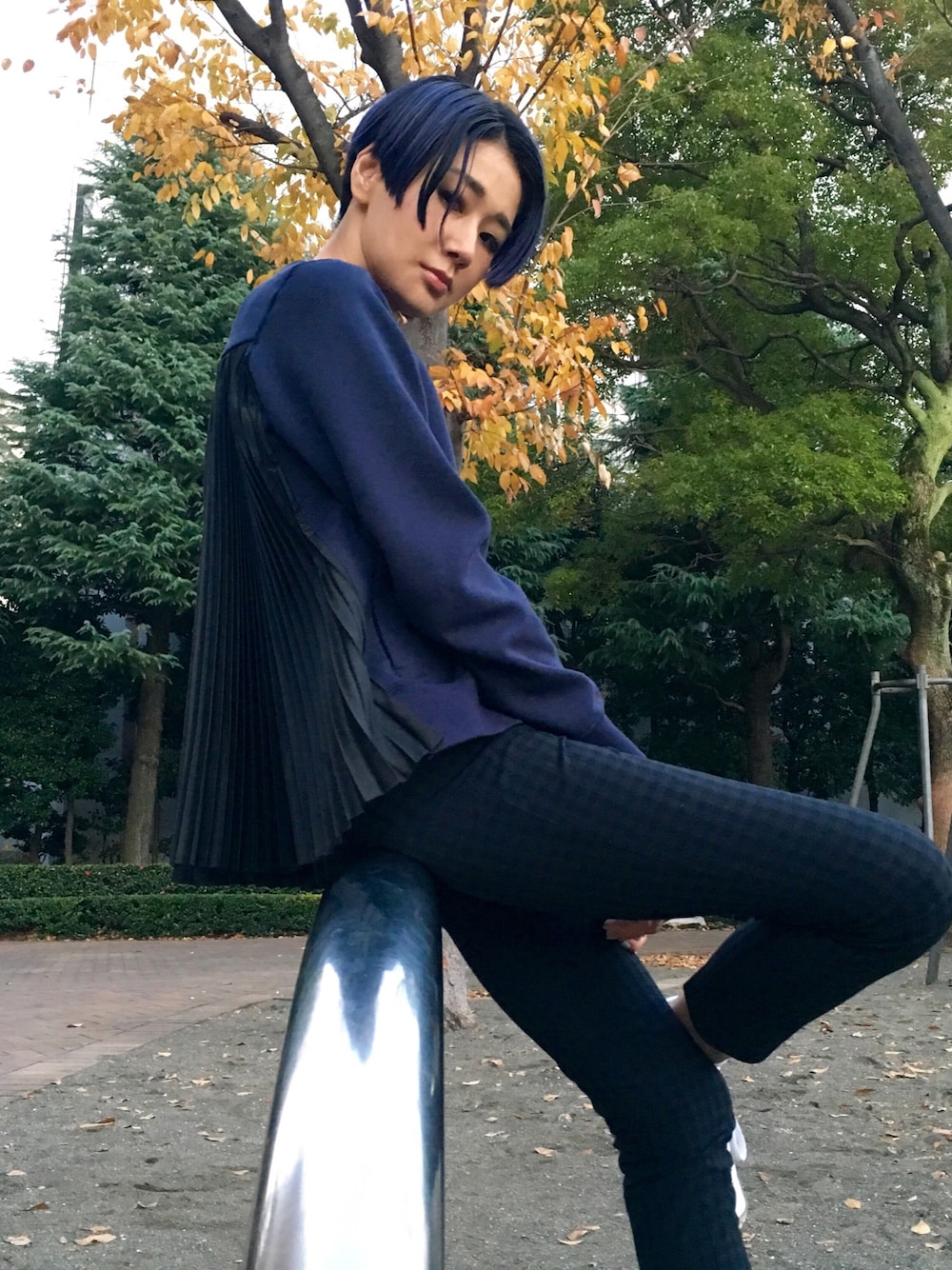 髪とアウトフィットを同じカラーリングでスポーツモード