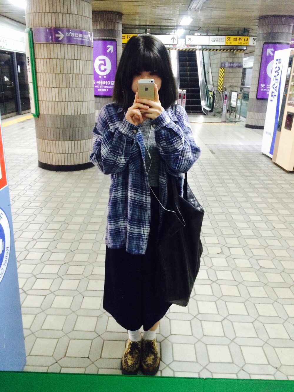 skirt, check shirt : vintage 검정머리로는 처음! 黒髪では初めて!