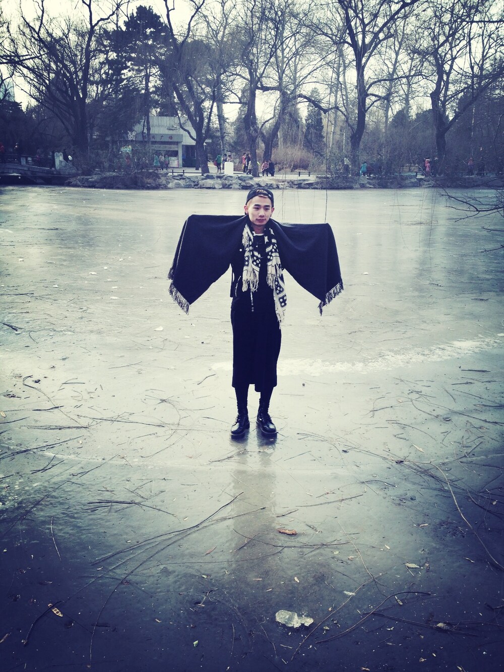 ブラック系のブーツを着用したメンズの春コーディネートの1枚目の写真