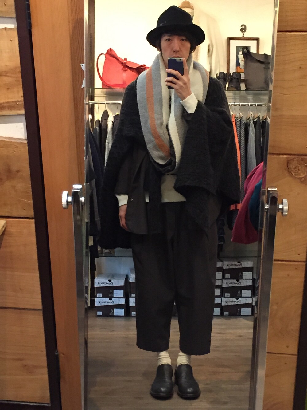 21/53 11/28...くもり。引き続き寒い。。 stofのニットカーディガンを無理やり引っ掛けました。あったかいけど腕の稼動域が70%減…