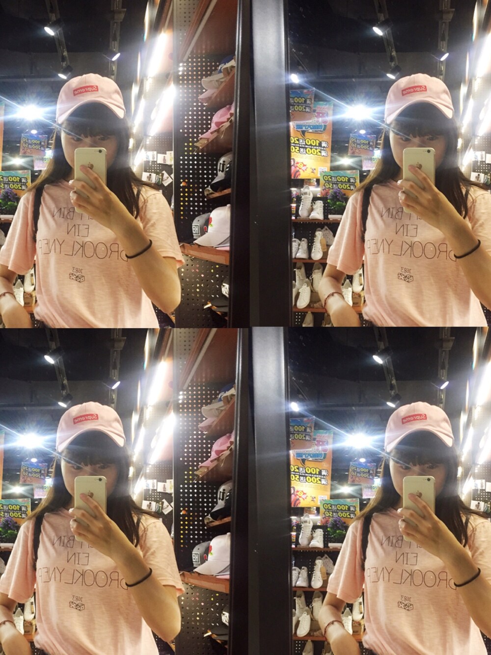 ピンク系のスニーカーを着用したレディースの夏コーディネートの1枚目の写真