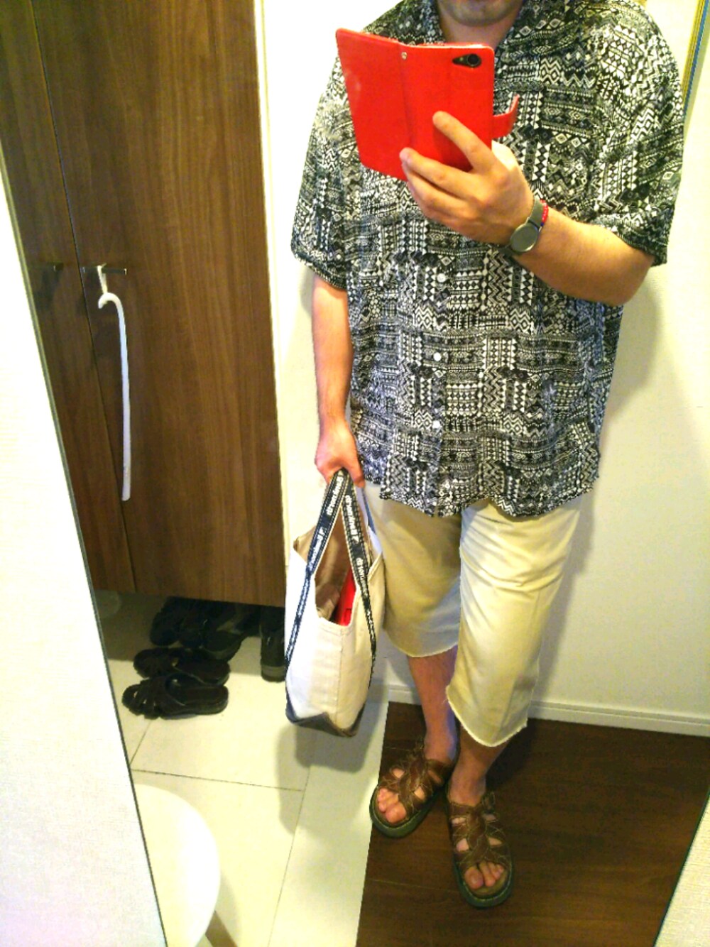 おはようございます。 viewありがとうございます。 今日は昨日よりまして気温が上がります。 トップスにオープンカラーシャツ。 ボトムスはクロップドパンツ。 足元はマーチン、サンダルです。 それでは、良い昨日を♪