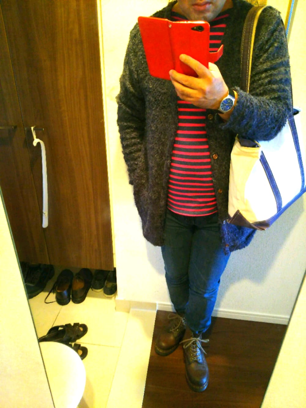 おはようございます。 viewありがとうございます。 今日はきれいめなロングカーディガンに、イギリスの労働者のブーツ、マーチン8ホールをあわせてみました。 インナーにはセントジェームス、ウェッソン、秋らしい色合いです。 それでは、よい1日を♪