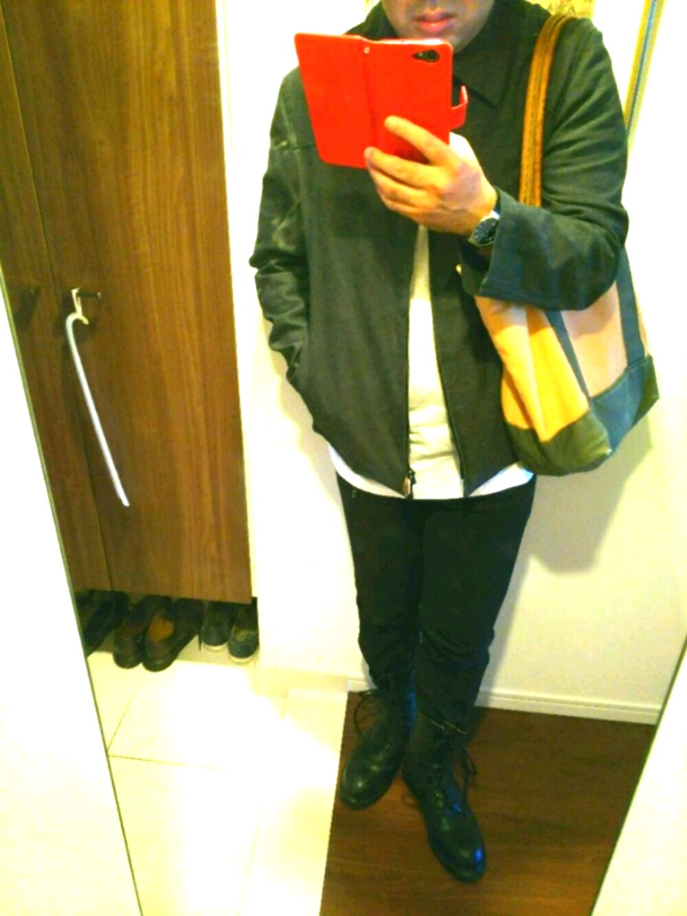 こんにちは。 viewありがとうございます。 今日はきれいめなブルゾンと、無骨なアーミーブーツをあわせてみました。 インナーは、白シャツです。 それではよい午後を♪