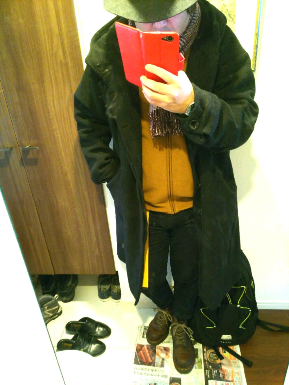 今日は。 viewありがとうございます。 今日はオーバーサイズコート、フリース、ハットといったきれいめなアイテムに、労働者階級の、無骨なマーチン8ホールをあわせてみました。 それではよい休日を♪