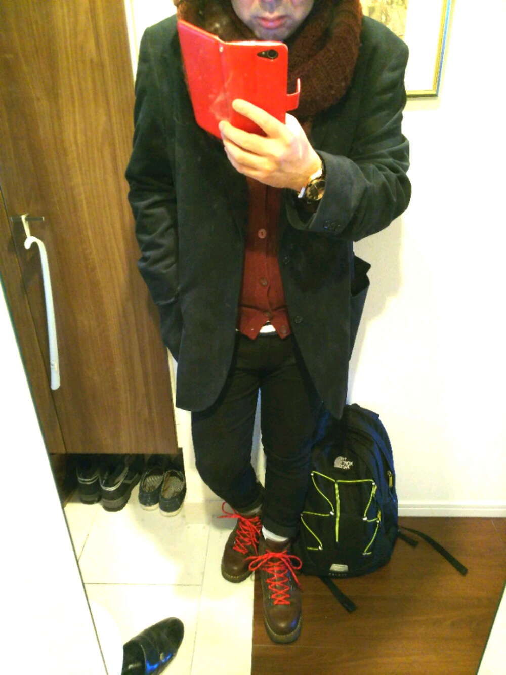 おはようございます。 今日は、きれいめなテーラードジャケットやガーディアン、黒スキニーなどを、カジュアルなマウンテンブーツで、ハズしました。 ガーディアンとインナーで、レイヤードされてます。 それではよい休日を♪