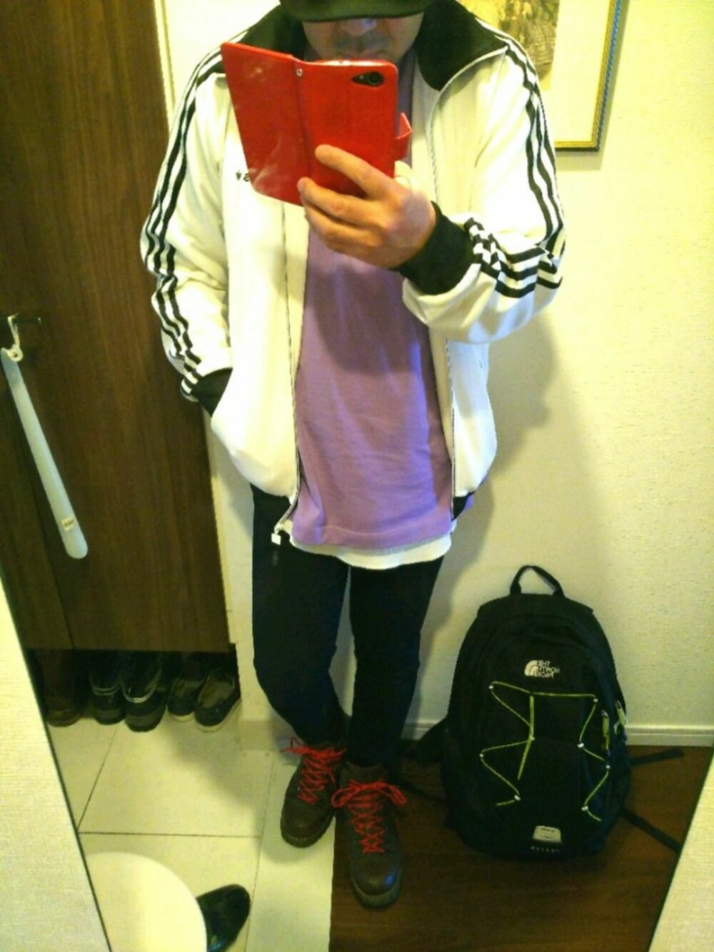 おはようございます。 今日はジャージのコーデです。 インナーにビッグTシャツ、レイヤードさせました。 ボトムスはスキニーデニム。 足元はDiemme、マウンテンブーツです。 最近、防風通聖散が効き、体重減少しています。 それではよい1日を♪