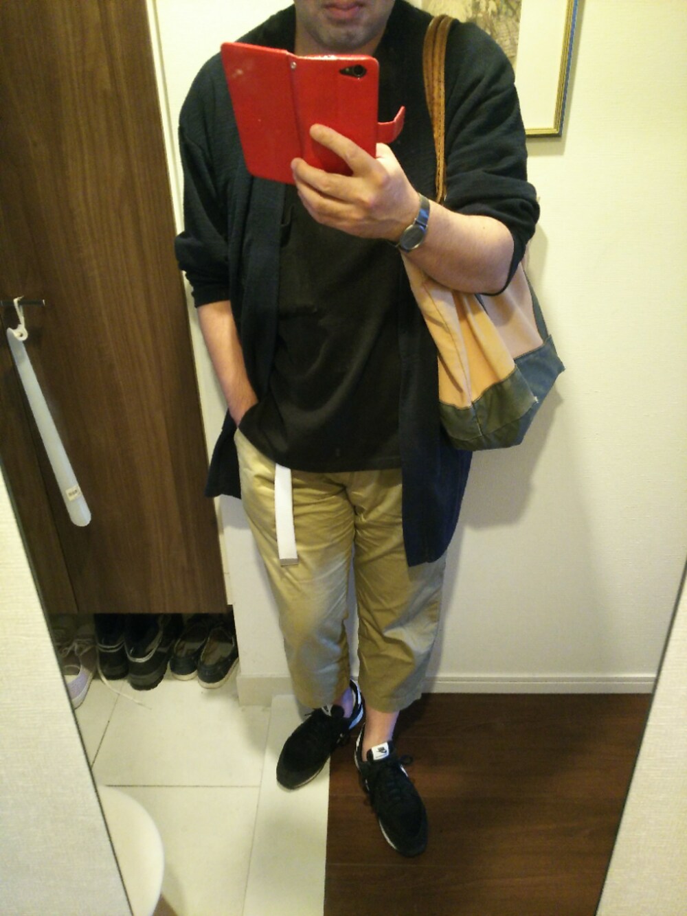 おはようございます。 viewありがとうございます。 今日はじめじめしますね。 アウターにコーディガン、インナーにビッグT。ボトムスはクロップドパンツ、足元はNIKEです。 それではよい1日を♪
