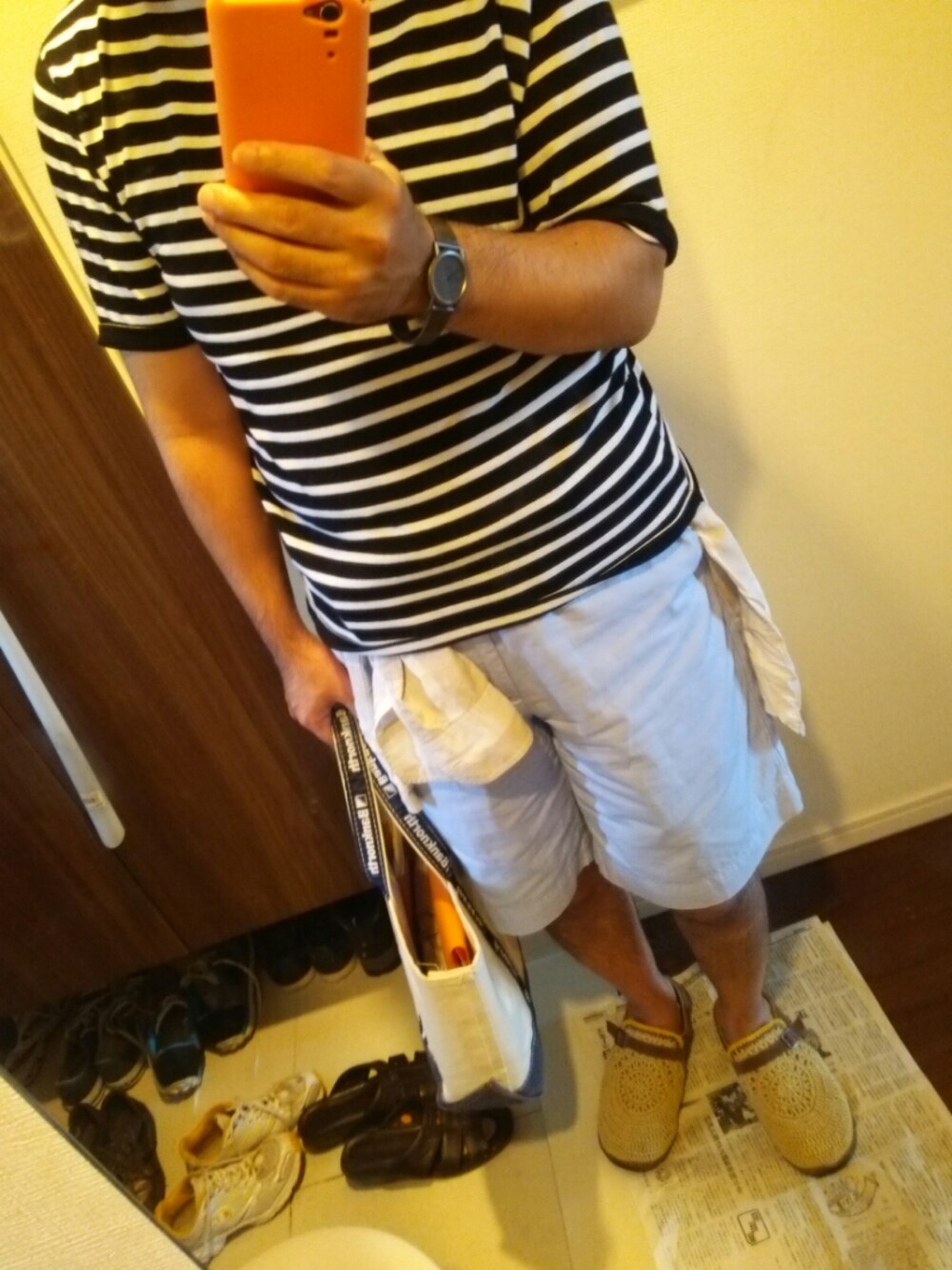 おはようございます。 シャツの腰巻きに挑戦しました。最近結構いますよね。 トップスはセントジェームス。ボトムスはラルフで、足元はサボです。 それでは、良い一日を♪