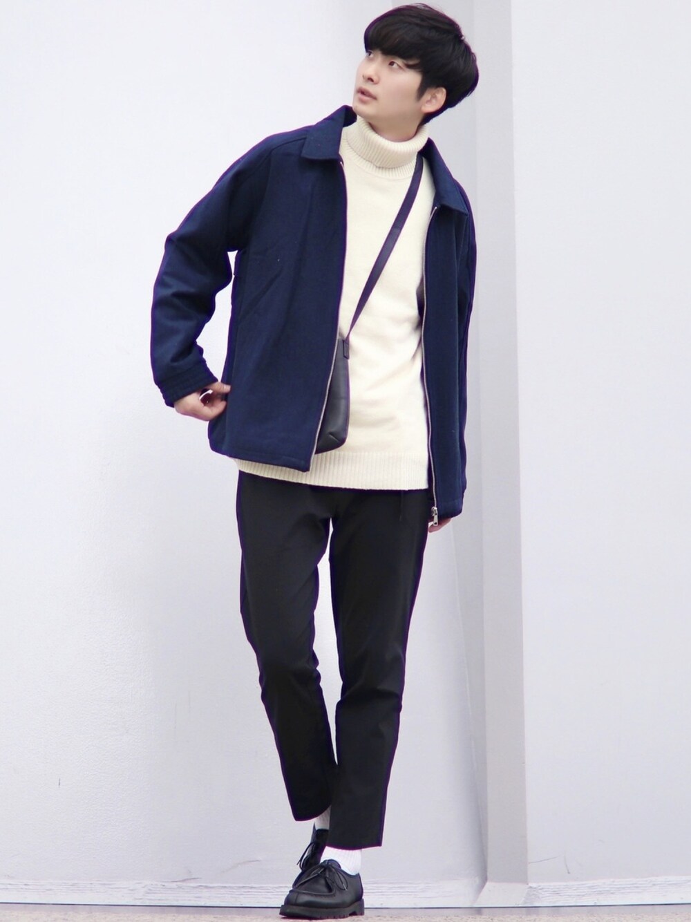 男の安定した黄金配色である白黒青で組んだ、 超王道キレイめコーデです👑ZIP FIVEのこの ジャケットはややオーバーサイズくらいで誰でも 挑戦しやすいサイズ感でした🙆♂️色もシンプルに ネイビーがオススメです🌟インナーとパンツは GUの商品!どちらも着回ししやすくオススメ✨ ZIP FIVEでは1,000円クーポンを配布している みたいなので良ければ商品見てみてくださいな♪