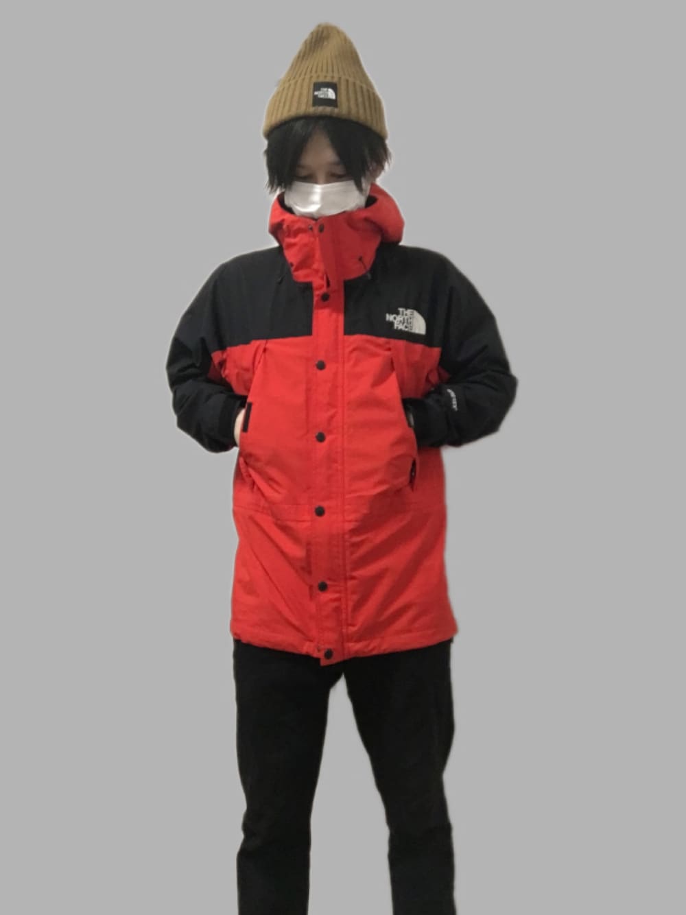 赤いな〜と思ってても人混みに混じると案外目立たないので不思議です😇 マウンテンライトジャケット×ファイアリーレッドです🌀