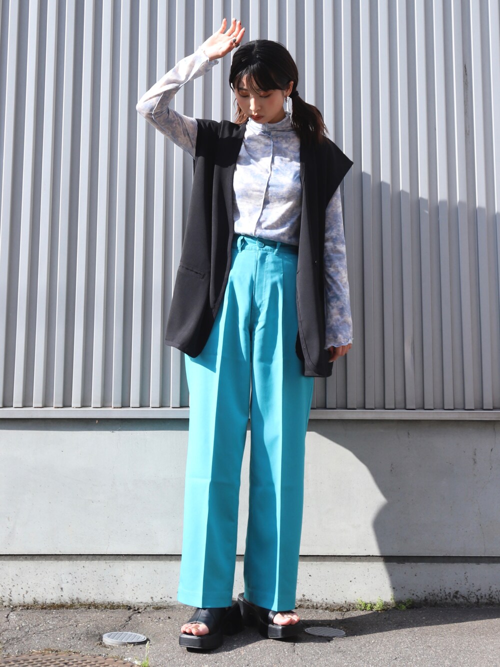 ターコイズブルーのカラーパンツ🐬🗽 形も色も良い感じ💮🙆♀️ 履くだけでコーデのポイントになるよね💙 他のカラーもかわいいぞ♡!